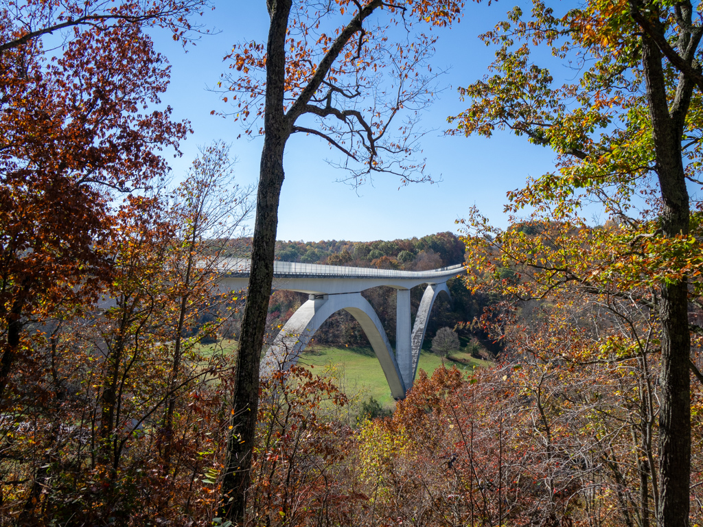 Crossed over the Birdsong Hollow bridge only a couple of miles into the drive - quite a dramatic structure when viewed from one side of the valley that it crossed – gradually becoming comfortable that the drive would be fine with my new, longer rig.
