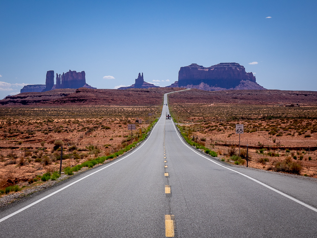 And before long, the formations of Monument Valley appeared over the horizon ahead, and I pulled over to take the classic photo on Route 163 immortalized in the movie as the spot where Forest Gump stopped and decided to quit his run across America.